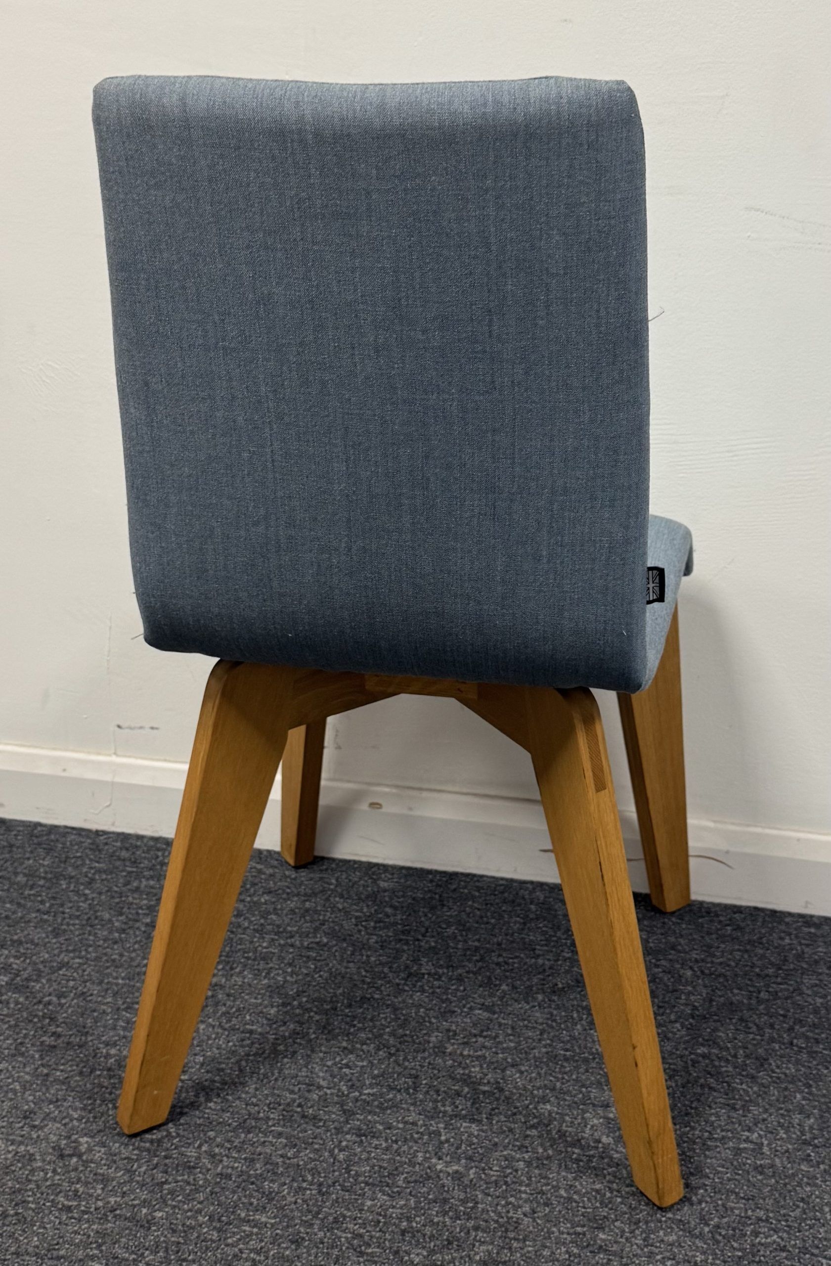 Frovi Jig Side Chairs Blue, Grey and Copper Upholstered Seats with Solid Oak Frame and Legs