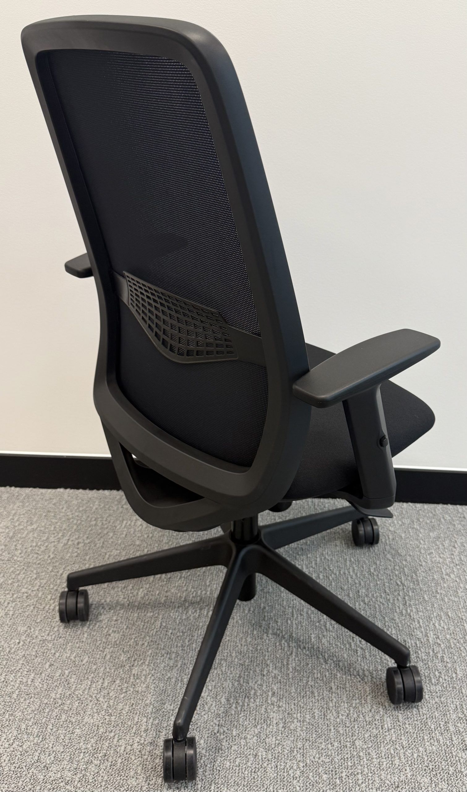 Eclipse is a contemporary mesh back chair with a strong plastic surround and lovely design lines. Adjustable body weight tensioner, seat height, and synchronised seat and back tilt. TASK SEAT - Upholstered seat pad, Combustion Modified High Resilience (CMHR) foam with polypropylene under seat. TASK MESH BACK - Black double mesh membrane Mesh composition 100% polyester.