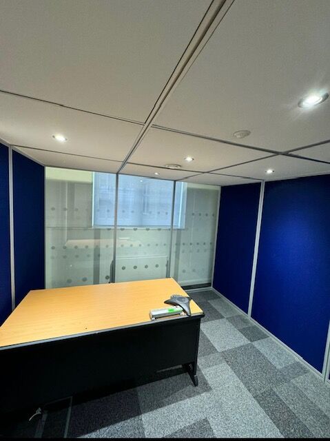 Boss Design Qube 3,3 is a modular, high-performance acoustic room that creates individual private meeting spaces for four or up to two office desk spaces.
