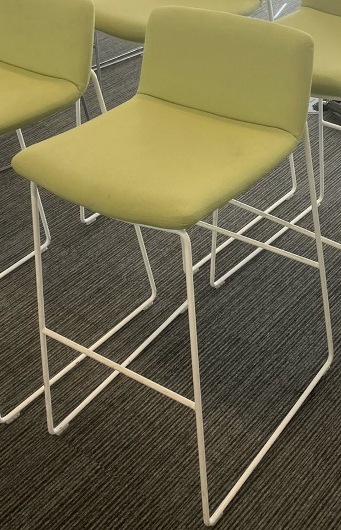 My Swoosh high stools are situated on a metal wire frame, complete with a metal footrest