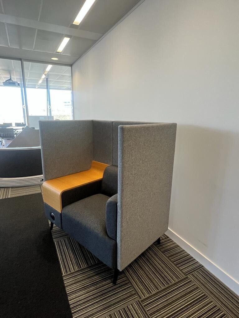The booths can be located to fit the needs of dynamic workspaces, promoting productive collaboration and focused work within the Tryst enclosures that are equipped with the advanced technology and power supply.