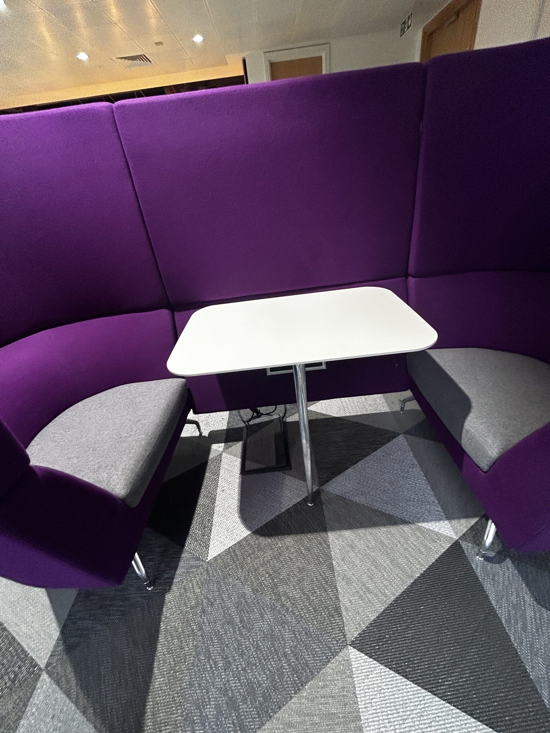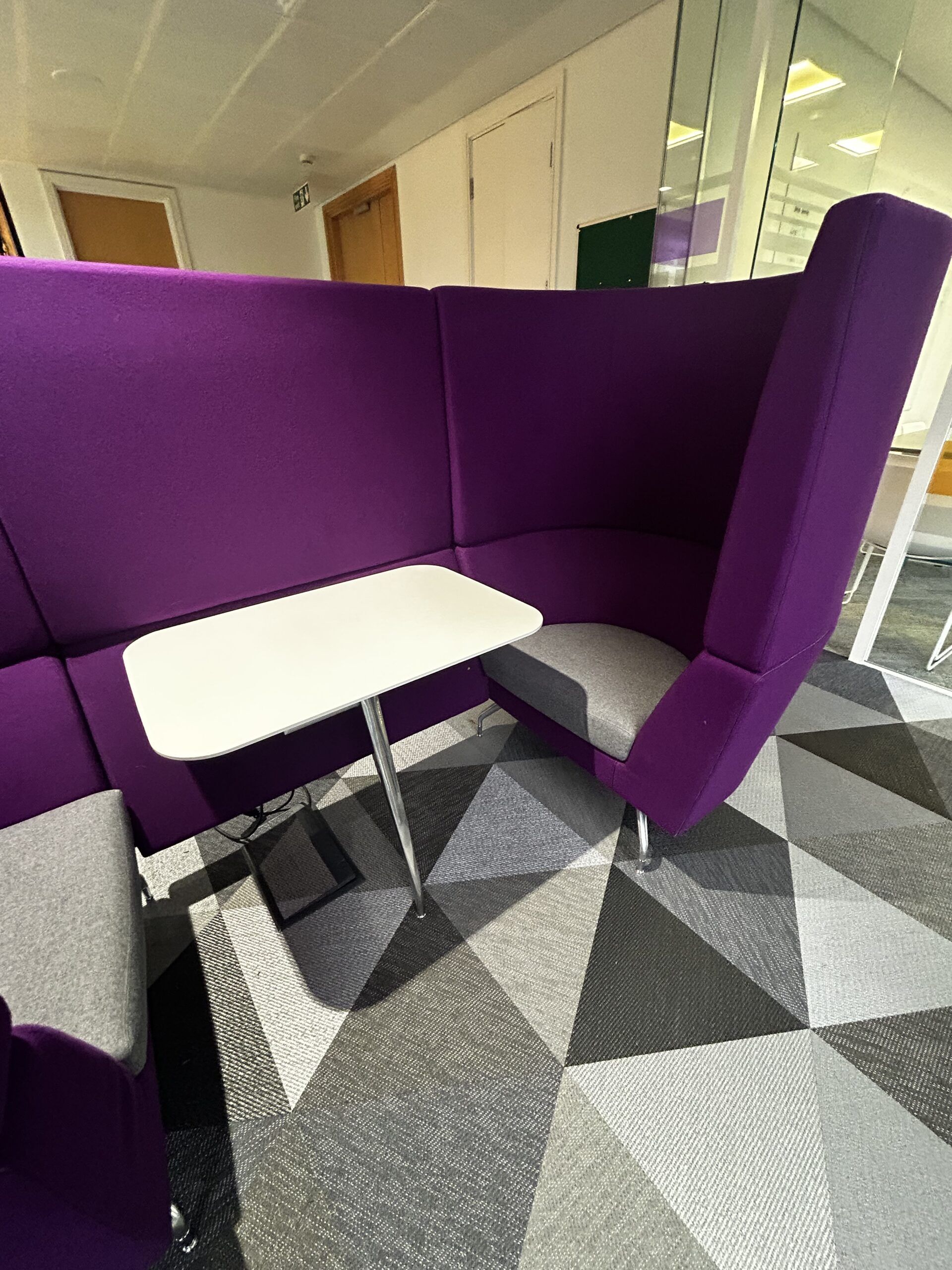 Home / Premium Office Furniture Brands / Used Orangebox Office Furniture / Orangebox Cwtch Collaborative Privacy Booth Seats 2 team Members Iridescent Purple