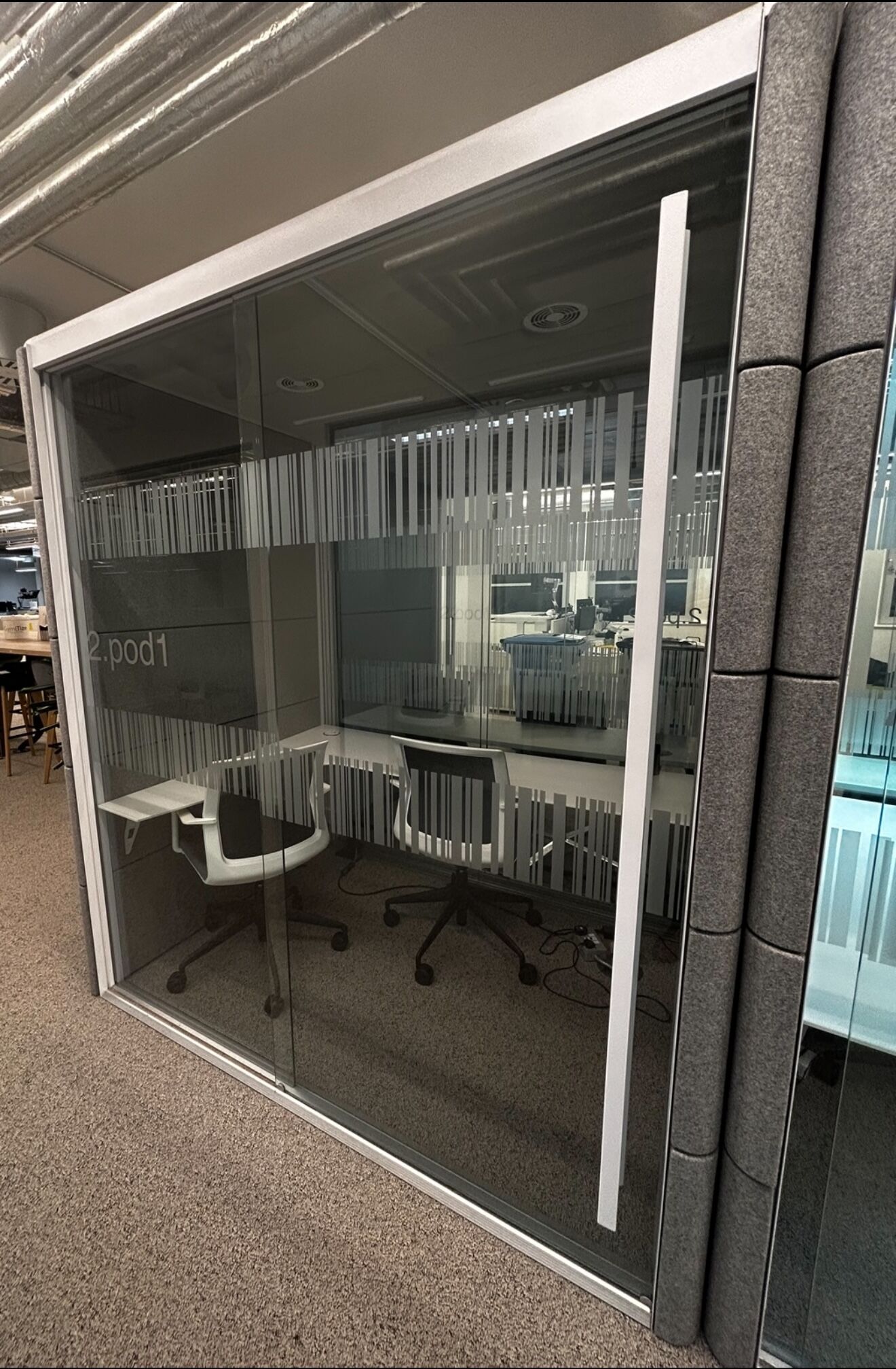 The Orangebox Air3 Pods are a stunning combination of high-quality glass and soft acoustic panelling creating superb acoustic insulation and speech privacy.
