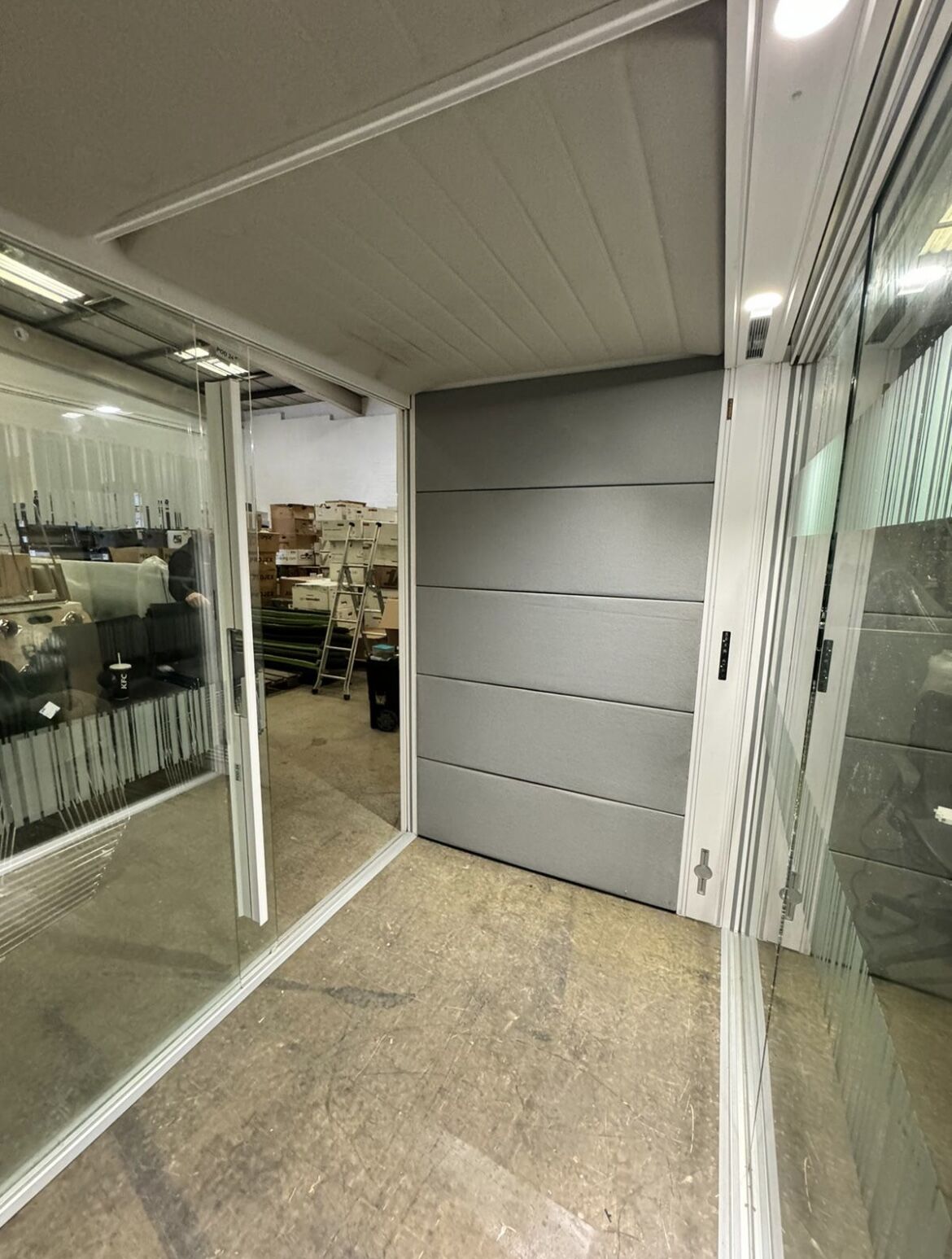 Internal Horizontal Acoustic Wall Panels finished in soft ice grey