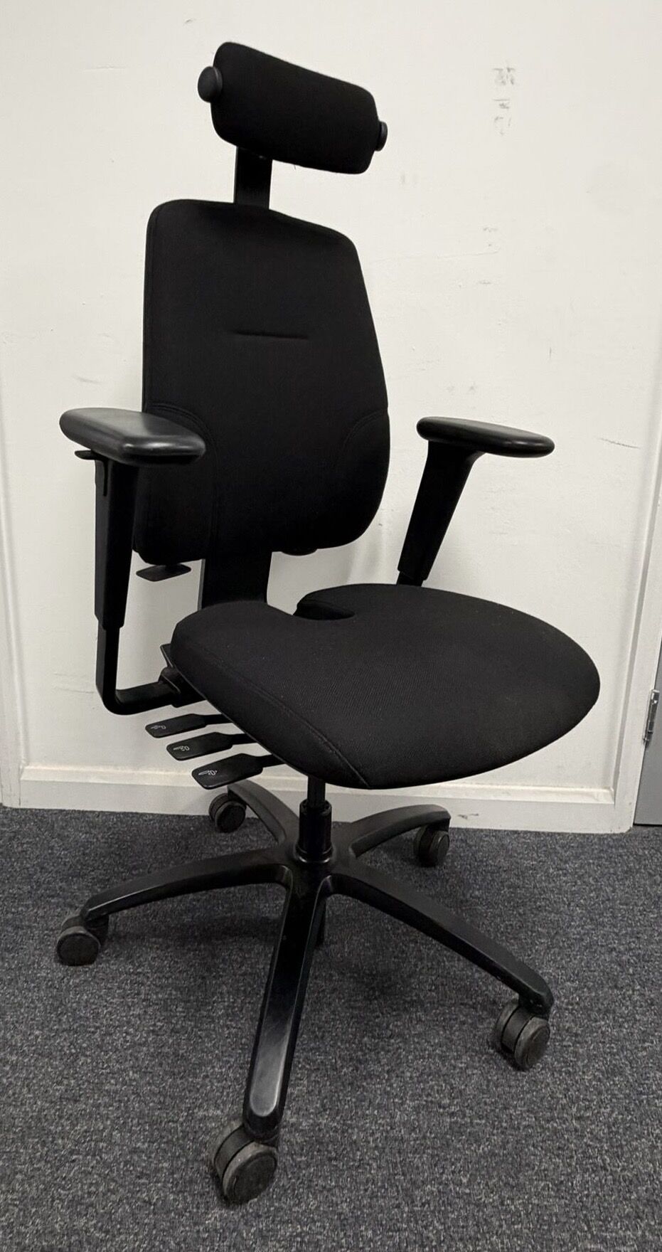 A curved medium back with a distinct waistline provides comfortable lumbar support. We have a huge choice of orthopaedic chairs that help workers with back aches. See all our used orthopaedic office chairs and used DSE chairs. You may even want to consider a sit-stand desk.