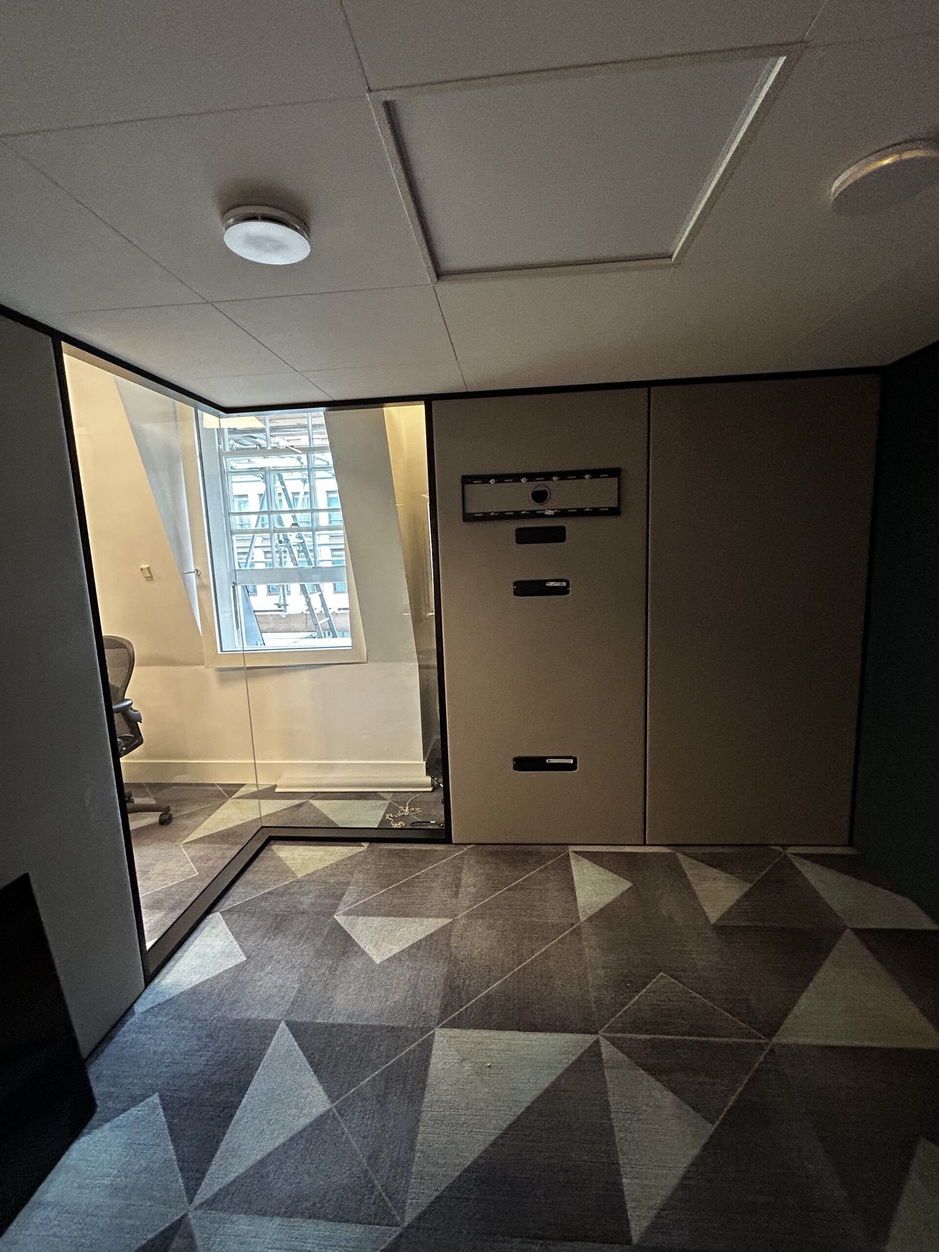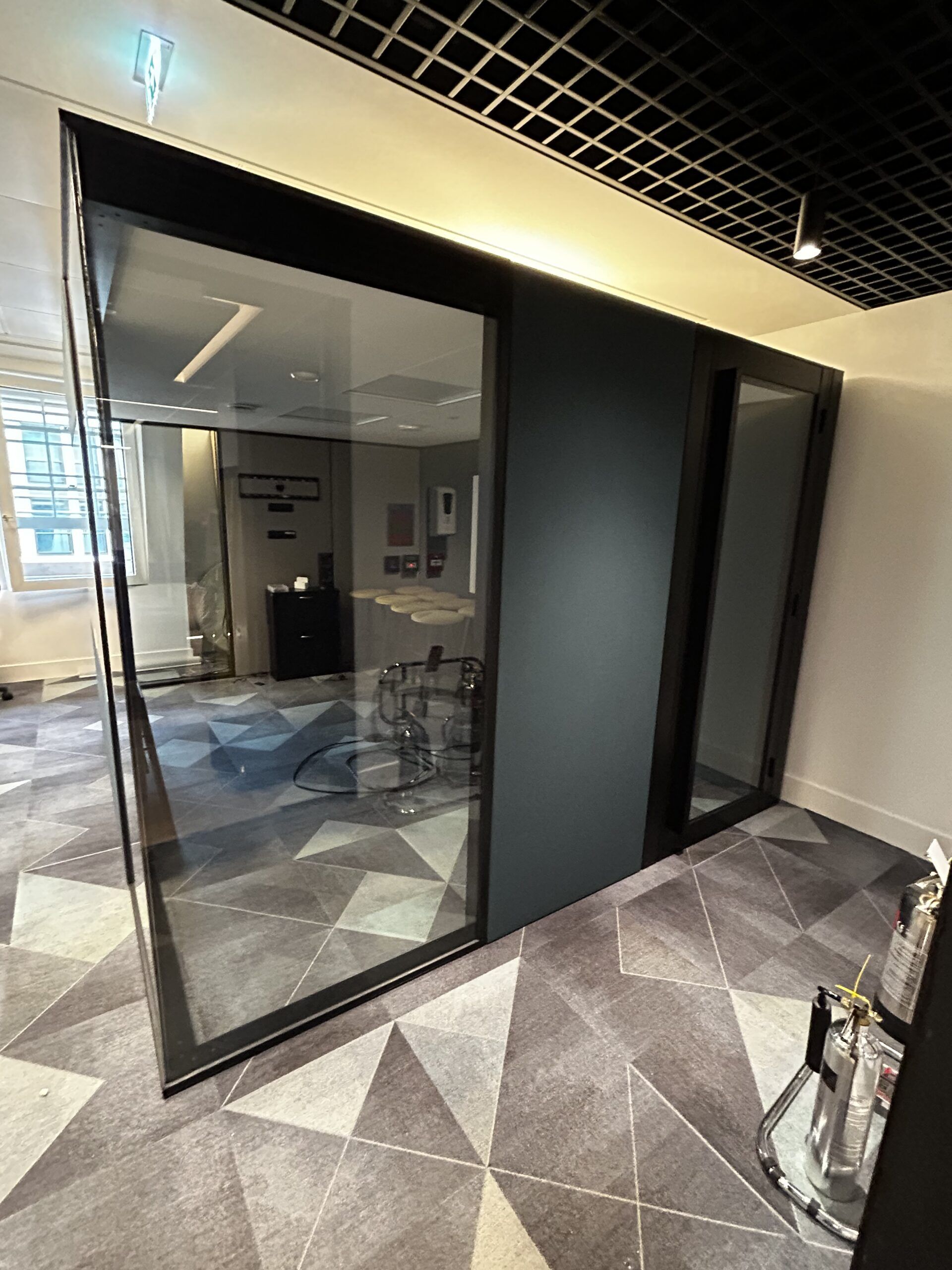 Blazer light hush Acoustic fabric Panels on all external non-glazed panels