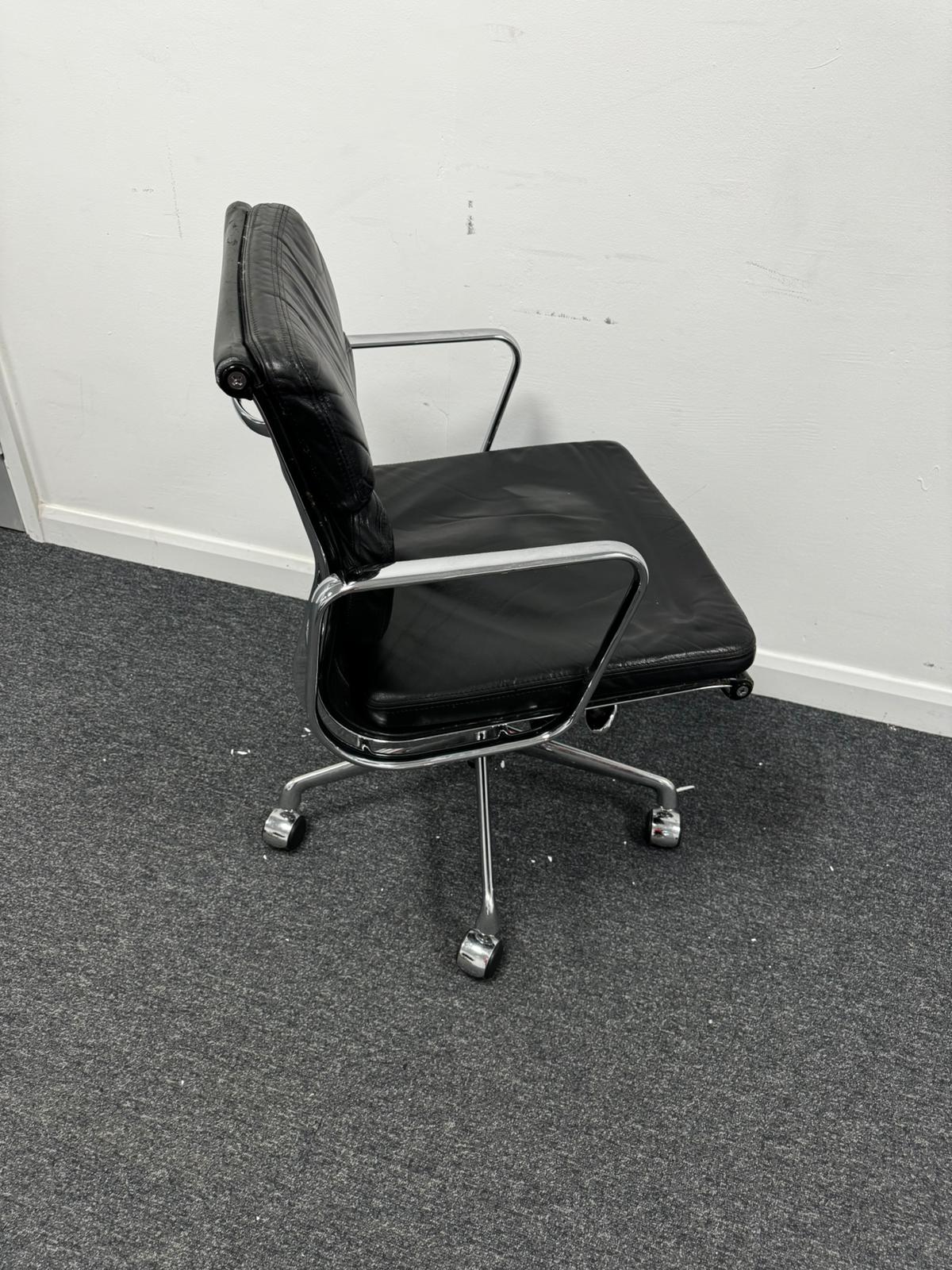 Vitra Charles Eames EA217 in Black premium Leather on a 5-star wheeled base