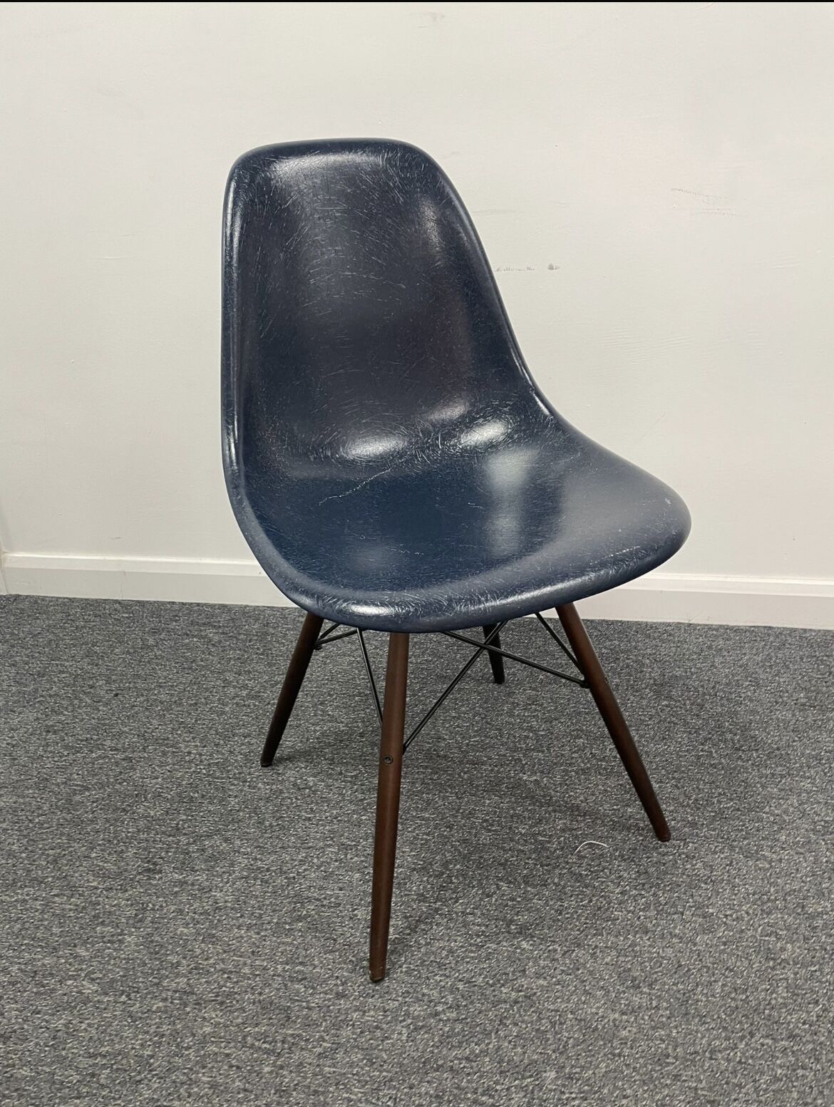 A original design by Charles and Ray Eames where they have combined the organic shell shaped seat with a four-legged natural wooden base.