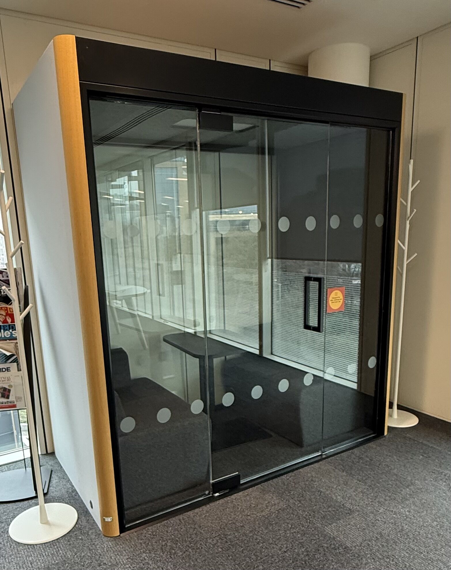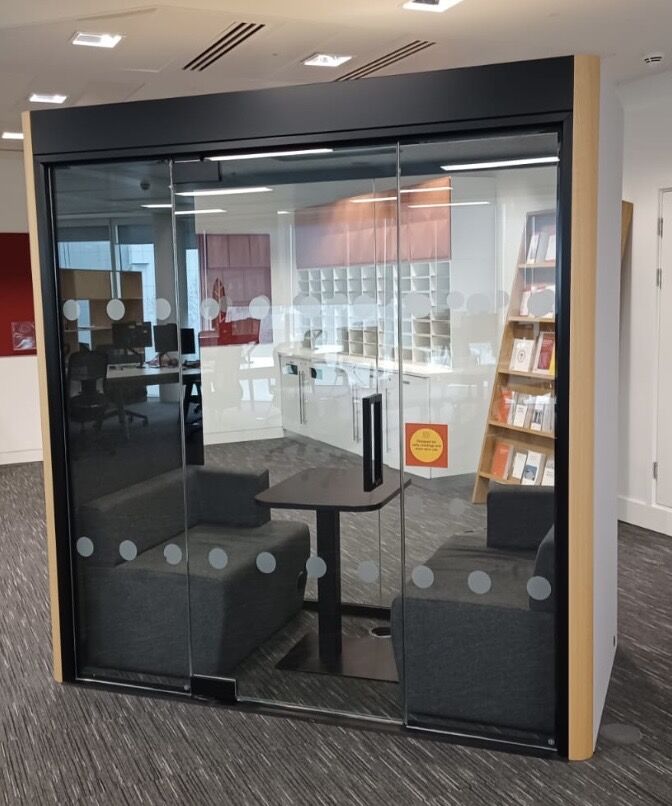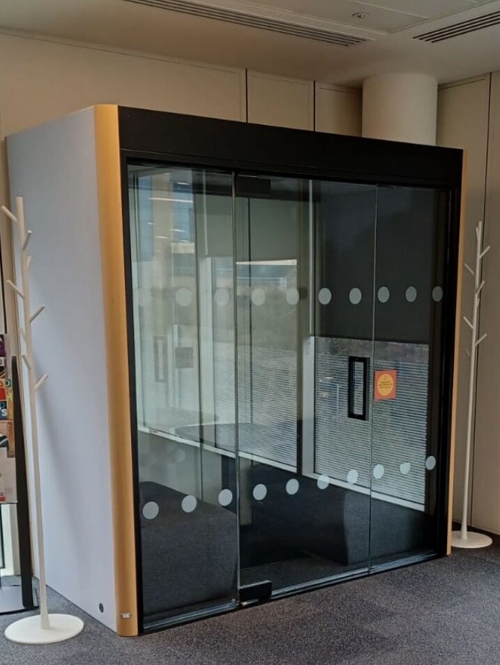 Frem Oasis Duo Acoustic Office Booth pod. Ideal for 2 team members. Anodised Black Frame