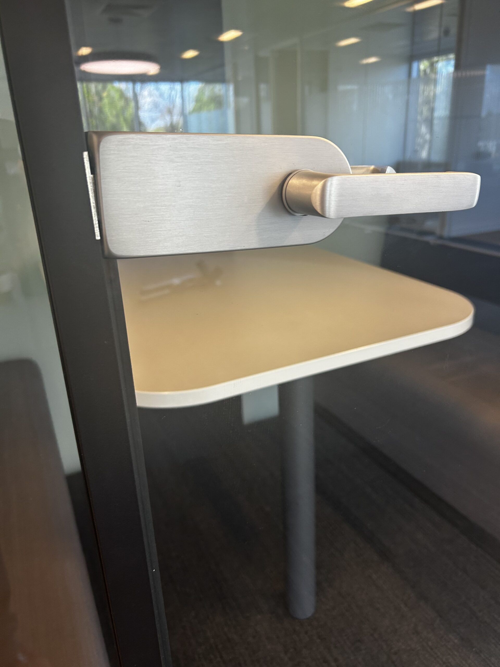 The door within the aluminium frame includes an acoustic seal