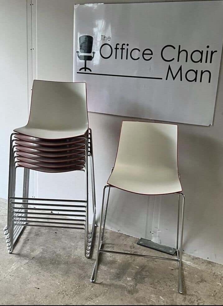 Catifa 46, Arper, is a stackable stool on sled base in chrome-plated steel designed by Lievore Altherr
