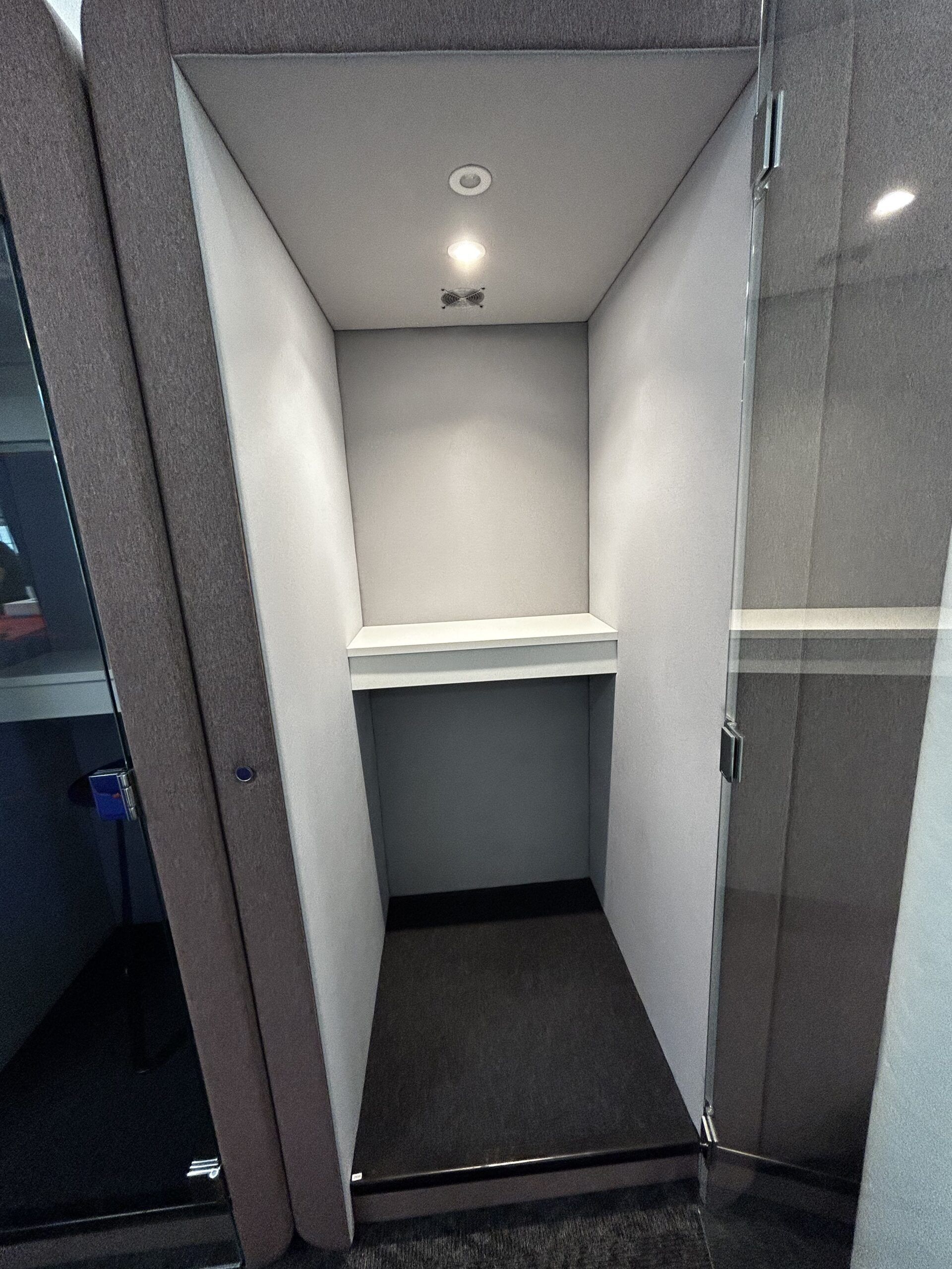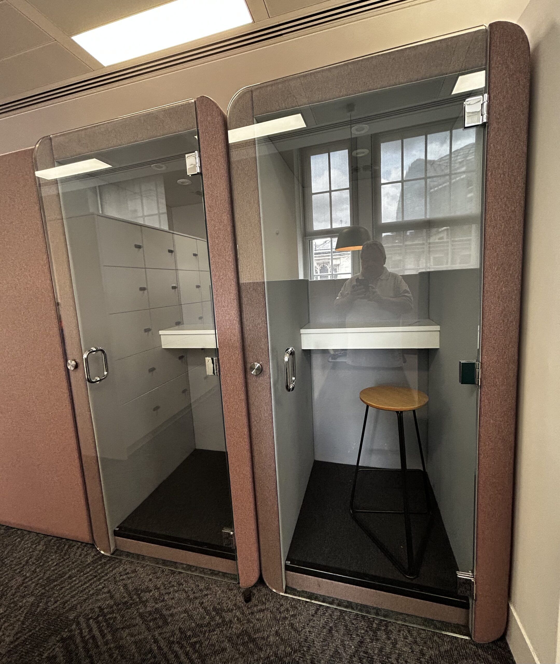 The Penelope outer design incorporates soft curves and glass door to help it blend seamlessly in any workspace or breakout environment and the interior ambience provides a tranquil space for making calls or working.