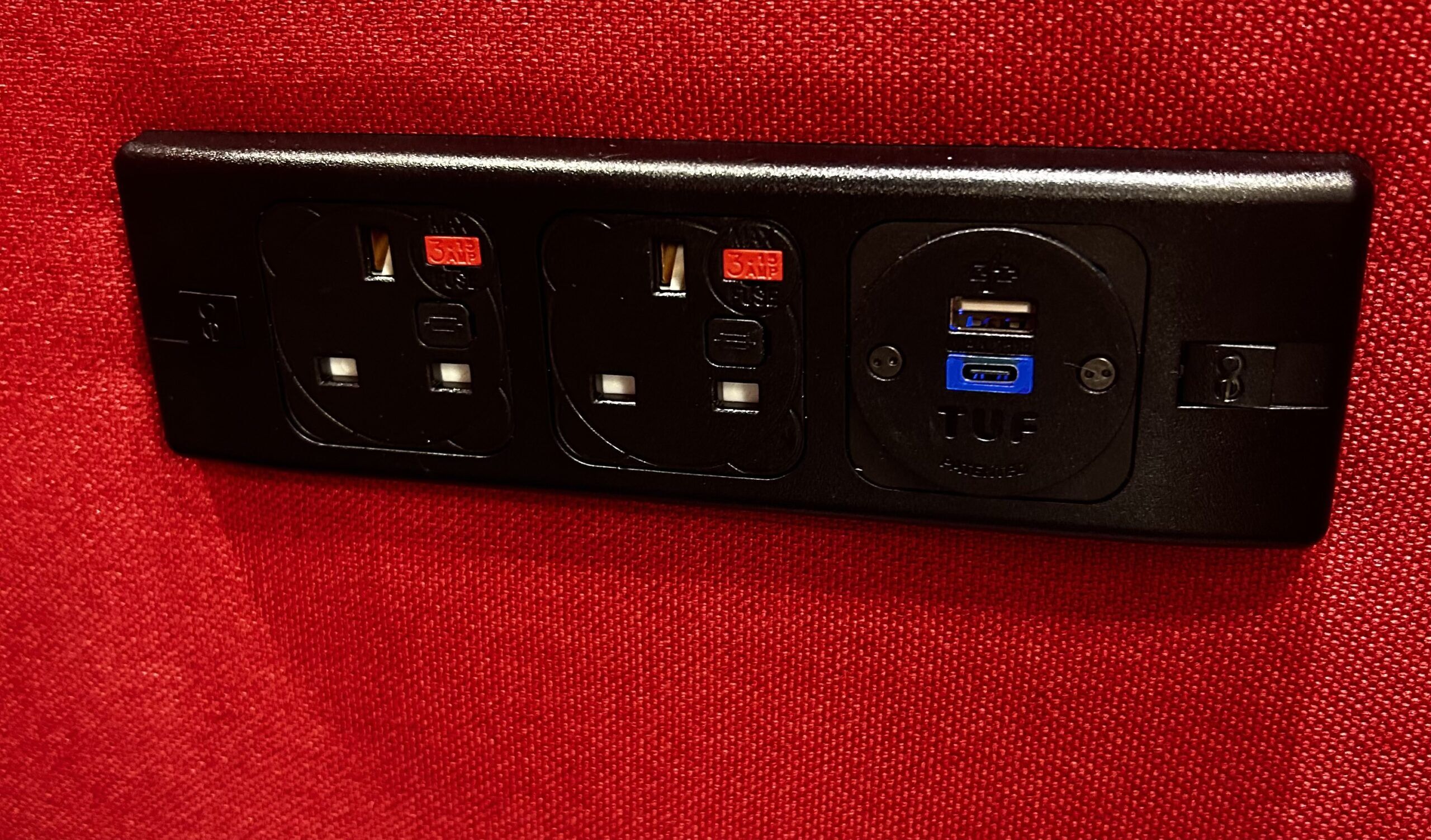 Power/Data: 2 x 230V, 1 x USB, 1 x USB C.