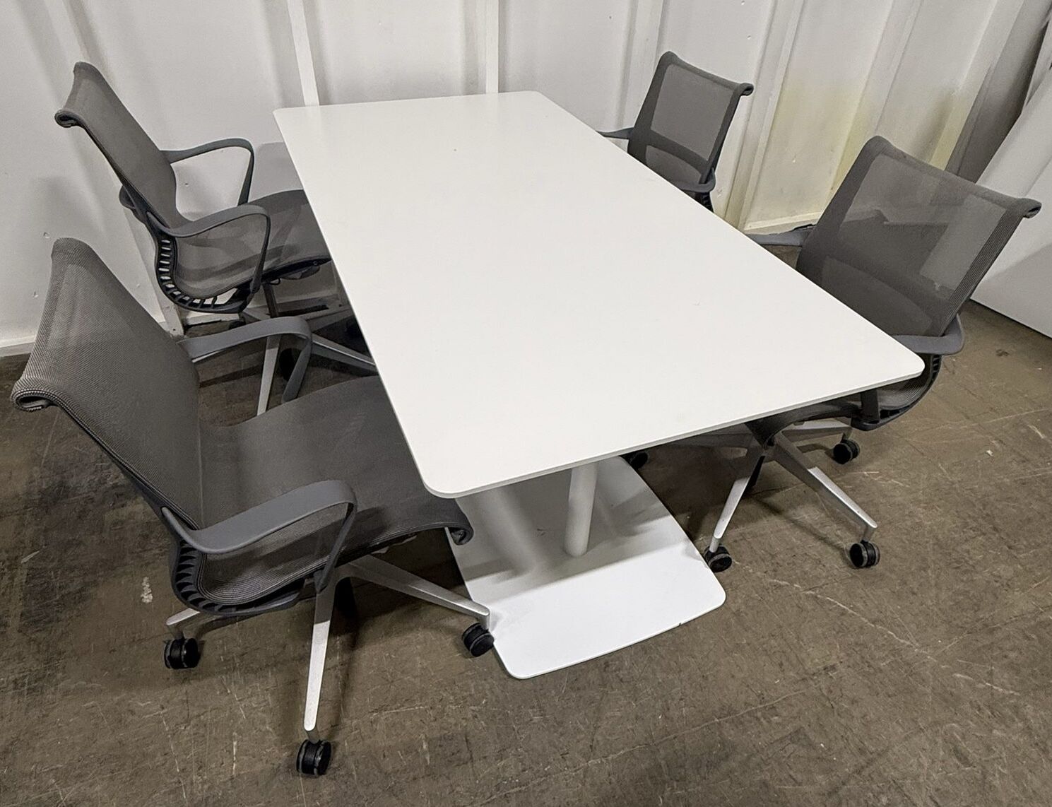 Steelcase Meeting table 1.8M X 1.0M Satin White Laminate Top on Twin White Pedestals