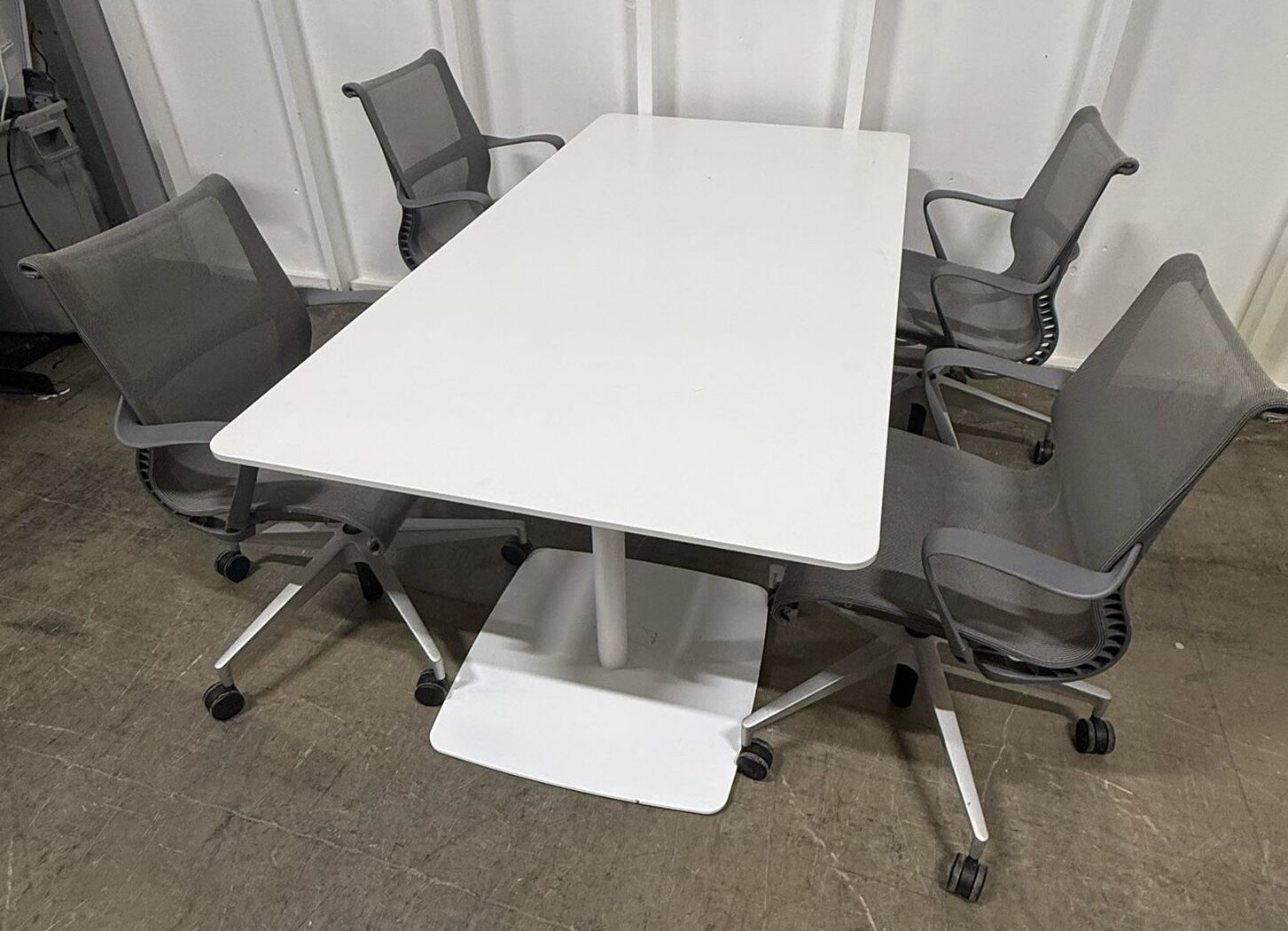 Steelcase Meeting table 1800 X 1000 White Laminate on White Goalpost Frame