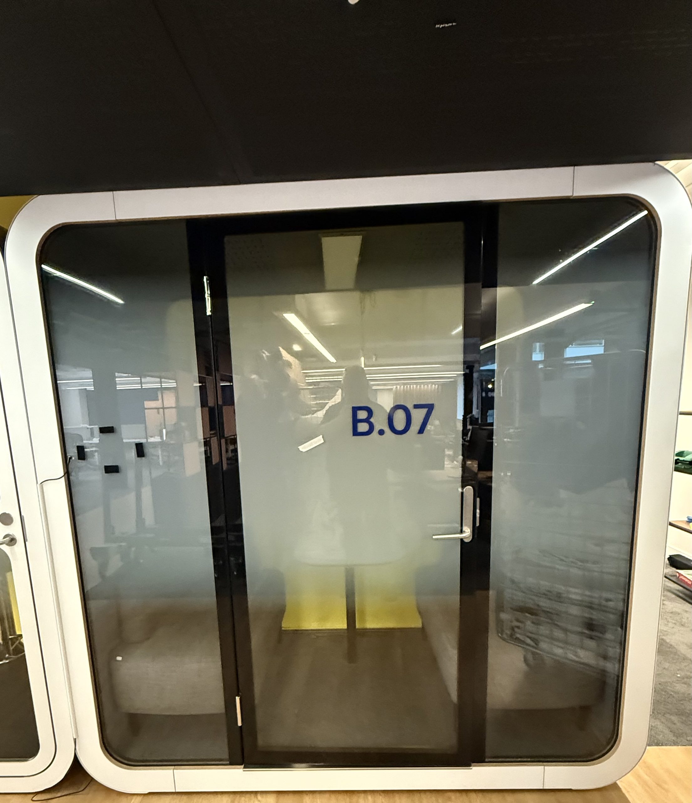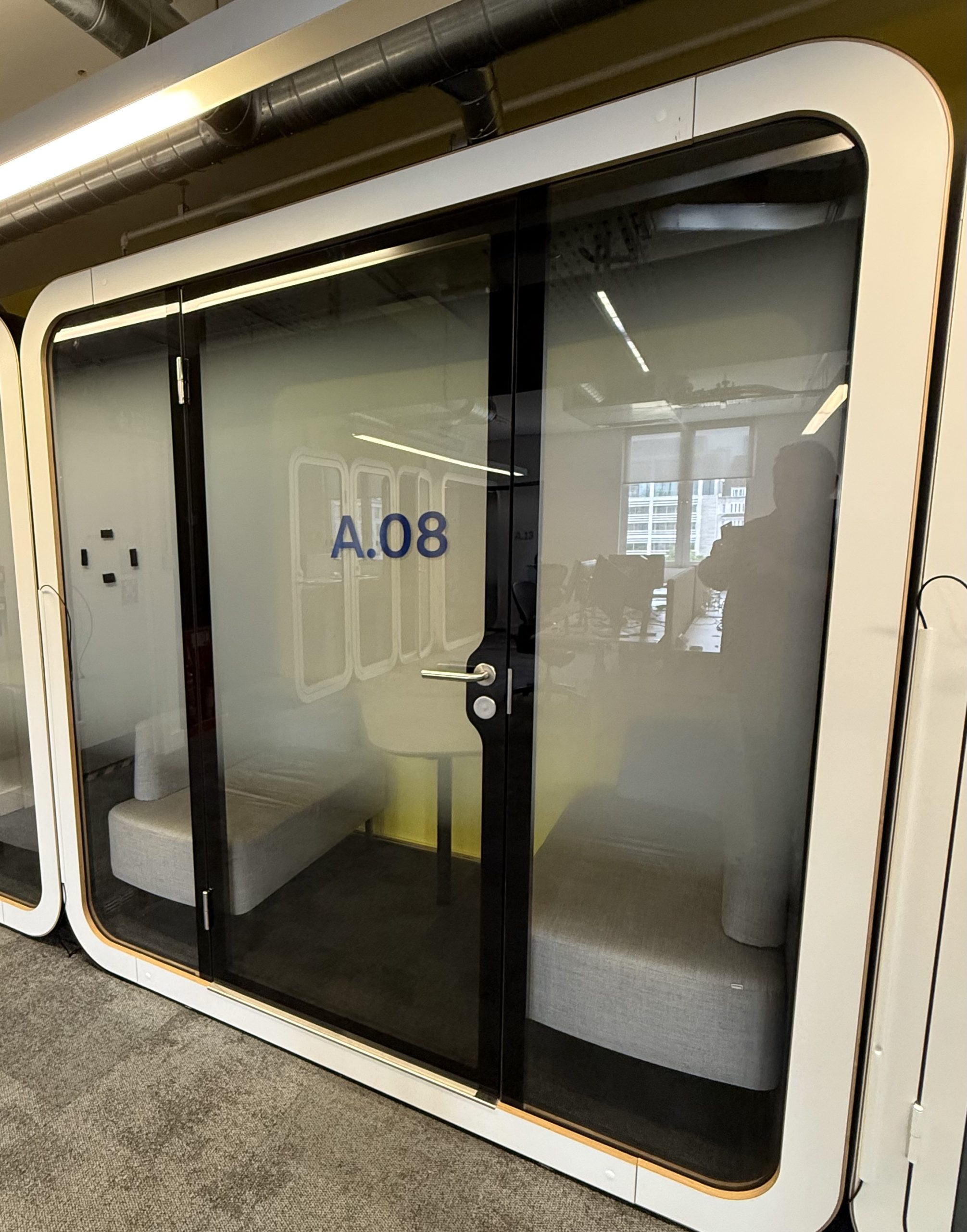 The speech level reduction (DS,A) of Framery Q is 30 dB measured according to ISO 23351-1. Pods with this level of sound insulation can be placed right next to workstations in an office and people working outside them will not be able to overhear discussions inside.