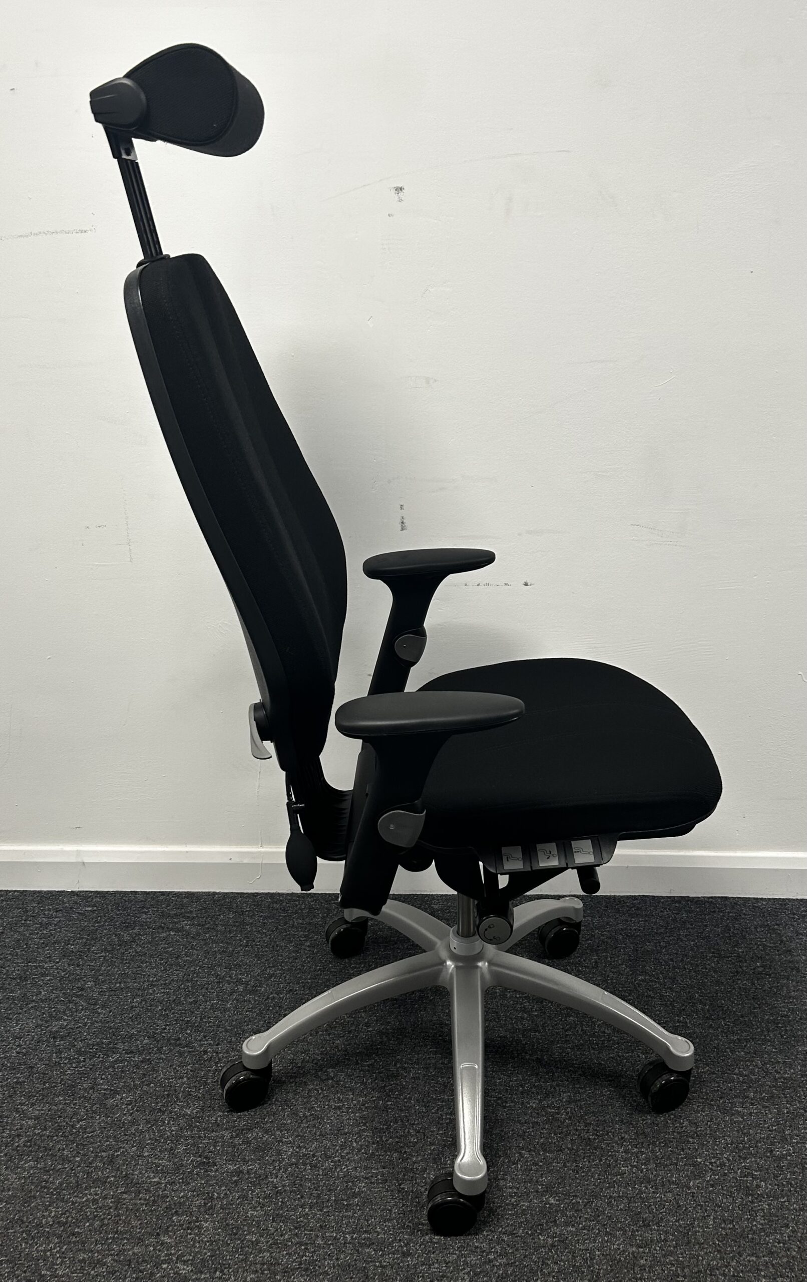 RH Logic 400 chair with headrest Finished in factory Black Fabric 3 Button model