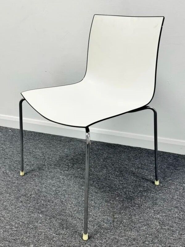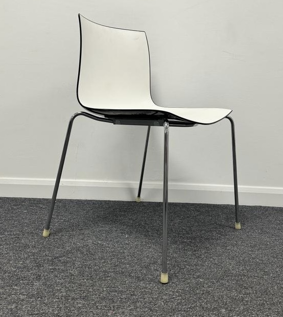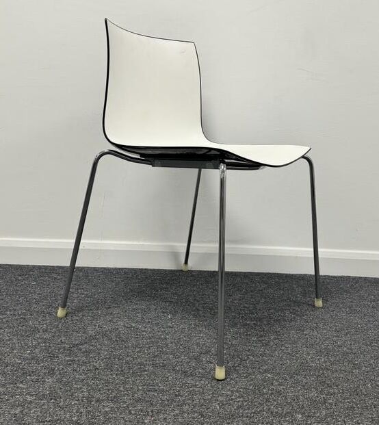 Arper Catifa 46 Stacking Chair PU Seat in dual tone white with Black Gloss Outer Shell