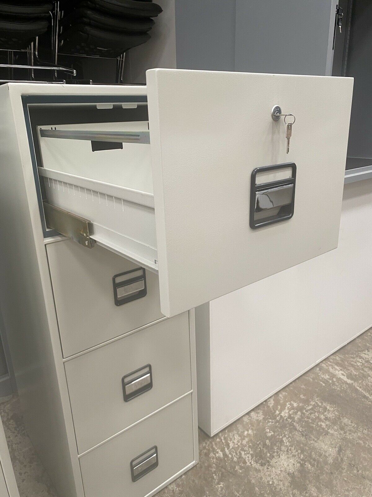Phoenix fireproof filing cabinet- Finished in grey