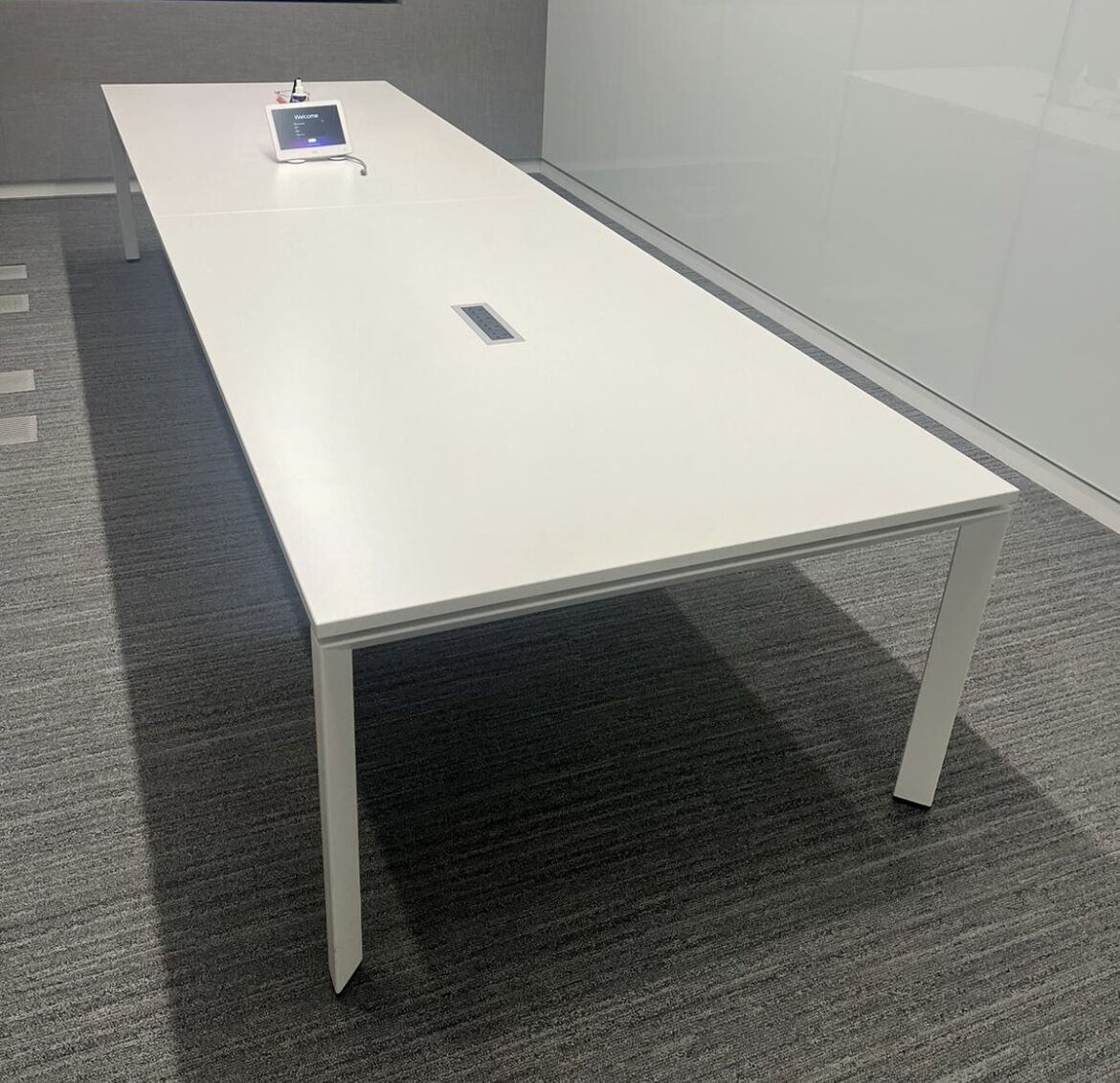 Steelcase Frame ONE Bank of 1M x 0.6M White Laminate Desks on White Contoured Goalpost Leg