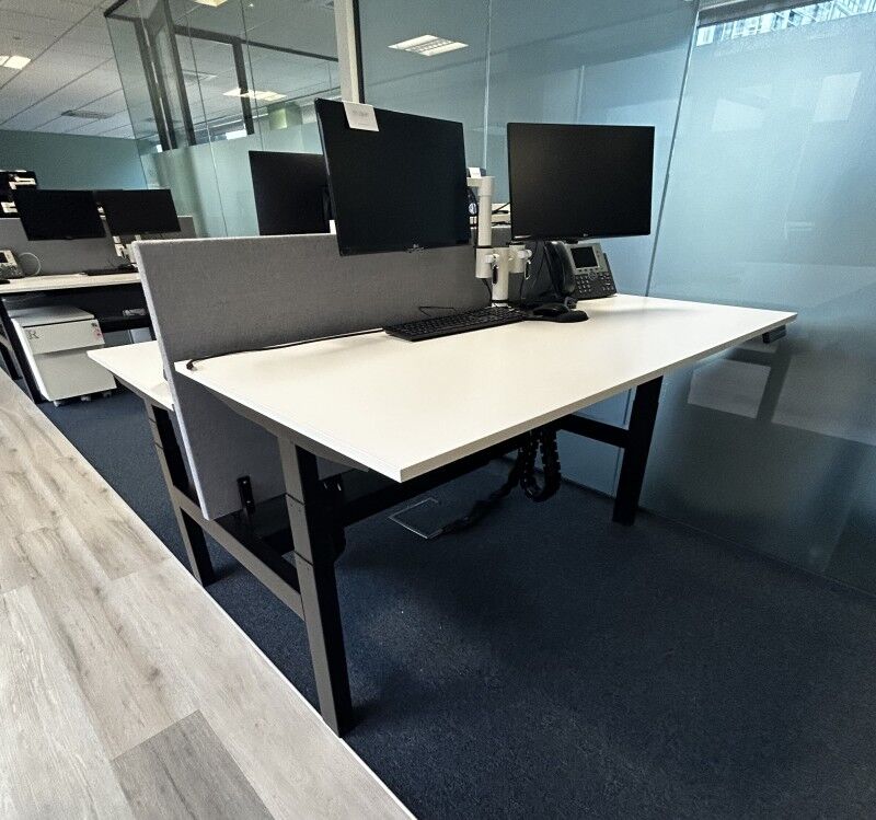 Sit Stand Back To Back 1600 x 800 White Desk Top on Black legs memory settings