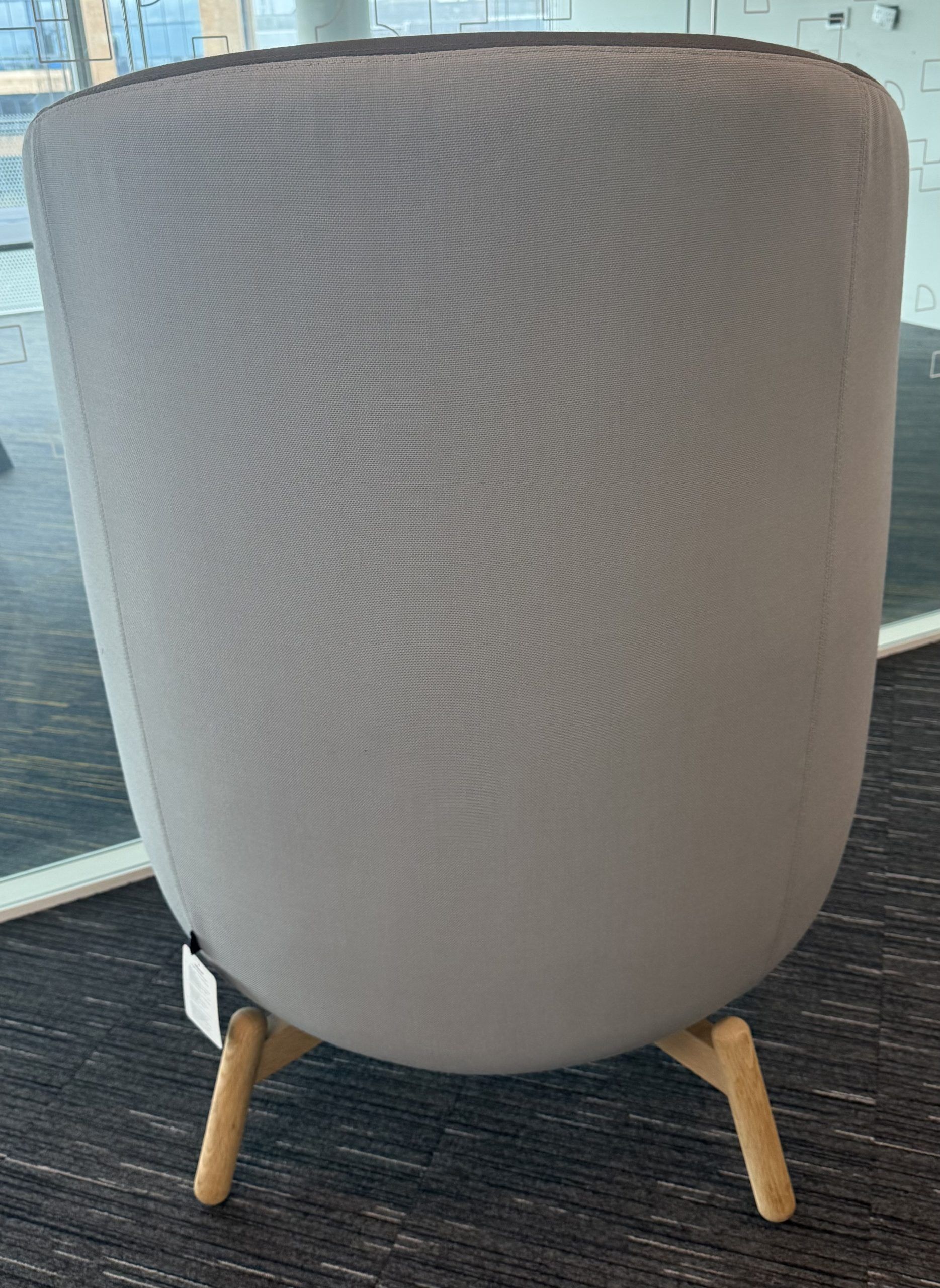 Duo grey pearlescent high end face fabrics introduce a colour change as you walk past the chair